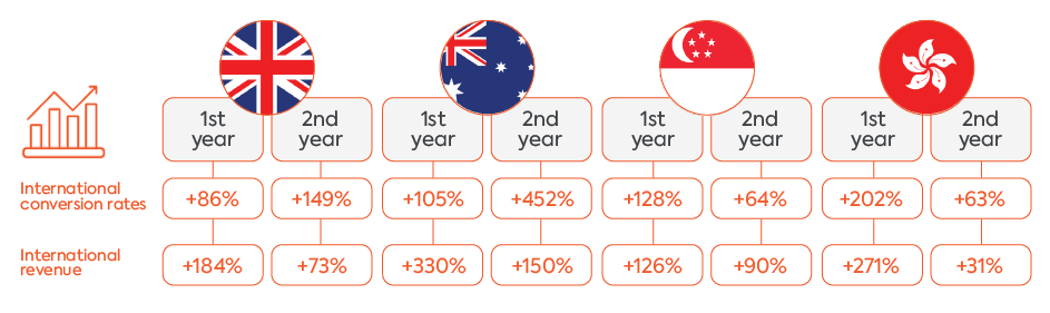 Two years on, Native Shoes has realised additional global online growth: international conversion rates have risen by an additional 115% YoY and revenues have grown an additional 40% YoY.