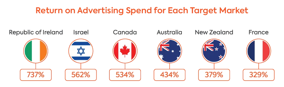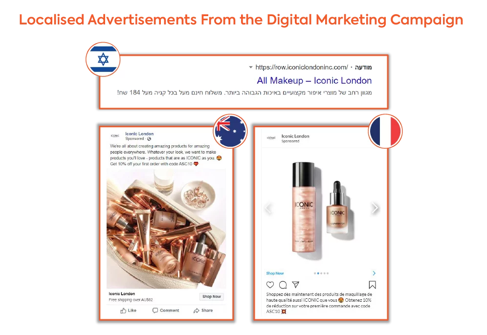 Following the success of the campaigns in these markets and the impressive ROAS, Iconic made the decision to increase their international marketing budget and to extend their campaign into additional non-English speaking markets. Global-e identified France and Israel as markets with large growth potential and began to run campaigns for Iconic in these countries.