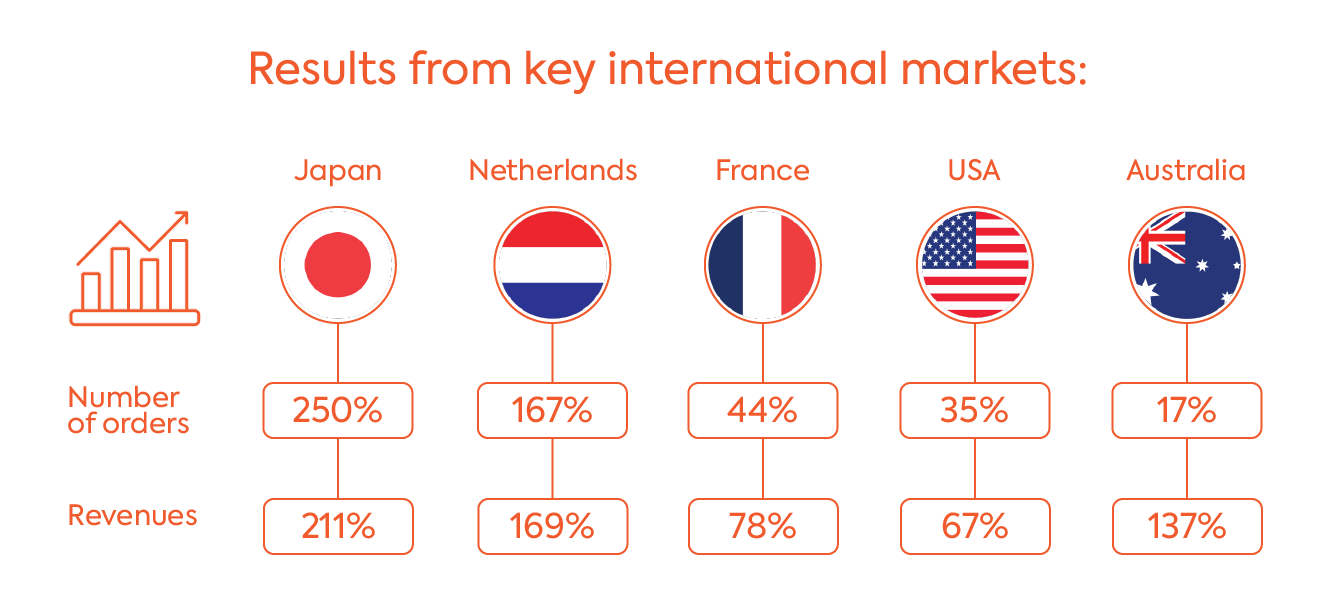 By localising the online shopping experience, the brand has seen a drastic increase in number of orders and revenues in key markets worldwide: