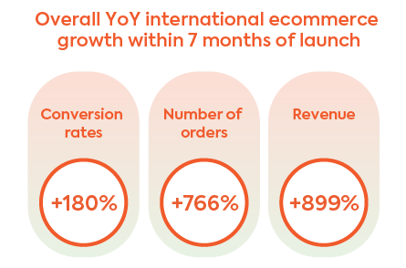 Since partnering with Global-e and launching its localized international website, Percival has been able to leverage its growing global traffic better. International conversion rate has increased by 180% YoY, number of international orders by 766% YoY, and global revenue by 897% YoY-all within seven months of implementation.