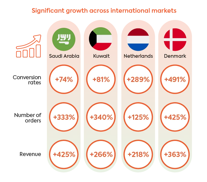 While the brand had always sold online internationally, the team realised they were not fully capitalising on their international sales potential and looked for ways to increase conversion rates and grow their direct-to-consumer (D2C) business.