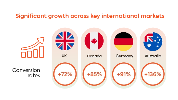 The popular leisurewear brand boosts international traffic conversion rates by 87% YoY