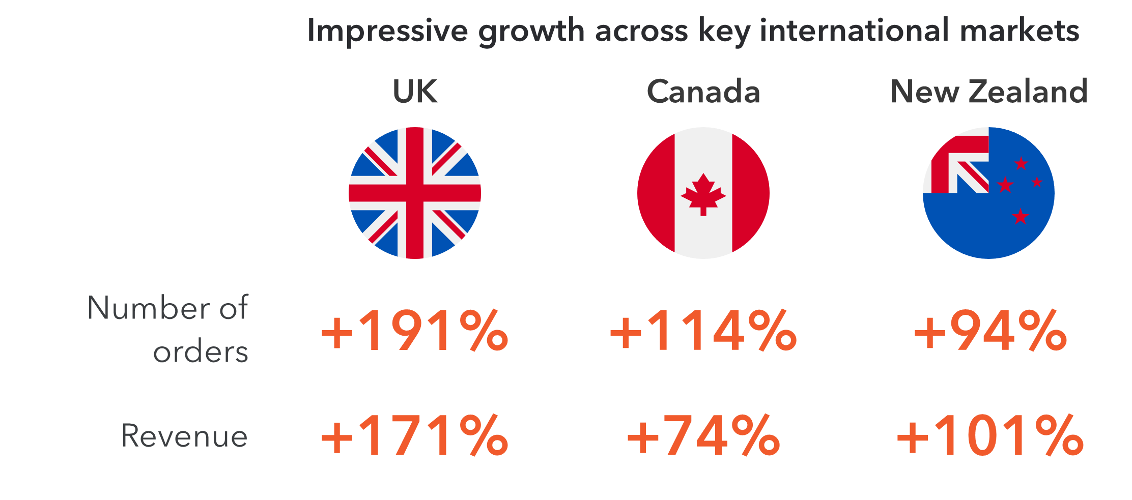 • 101% YoY Growth in international online revenue from New Zealand