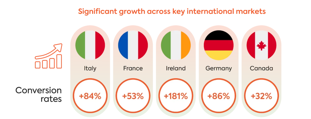 • In Germany, a key market, international conversion rates rose by 86% YoY